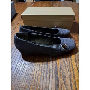 Size 8.5M Naturalizer Prospect Graphite Grey Slip On Low Wedge Heel Shoes