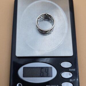 Size 8.75 Sterling Silver Worn Ocean Sea Waves Unisex Band Ring A5669
