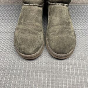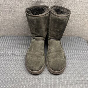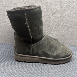 Step out in style with these classic black UGG boots. These boots are perfect for any casual occasion and will complement any outfit. The pull-on closure makes it easy to slip these boots on and head out the door. The round toe shape and flat heel style provide both comfort and style. Made with high-quality suede material and a regular calf width, these boots are sure to last. The solid pattern and bootie style add a touch of sophistication to your look. These boots come in a UK size 6, US size 8, and EU size 39. Personalization is not available for this product. Don't miss out on the chance to own a pair of UGG Classic boots.