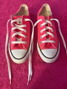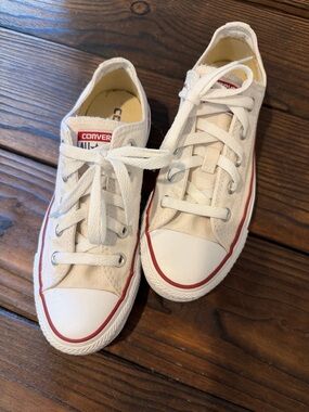 The product is a pair of Women's Converse All Star Low Top Shoes in dark blue, featuring a scrunchie back design. These shoes are made of 100% cotton material and are in size 8. They are ideal for everyday wear and are manufactured in Vietnam. The Converse brand is known for its classic and comfortable footwear, making these shoes a stylish and practical choice for women looking for a versatile and trendy footwear option.