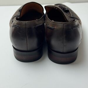• Uppers: The brown leather uppers show natural creasing and light surface scuffs consistent with normal wear. Leather retains a rich color tone and shine. No major cracks, tears, or holes. Tassel details and braided accents are intact and securely attached.