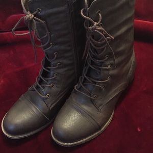 Only worn once, basically brand new! Brown-Charcoal color. Zippers work perfect and original ties with the boots. About 1/2 inch heal.