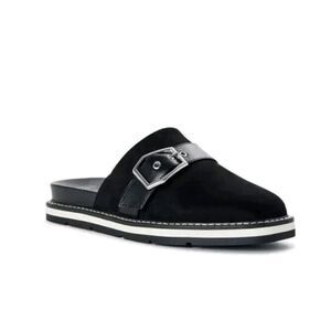 Size 9 Buckled Mule Slides Black Suede Comfort Flats Loafers Shoes
