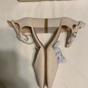 FISACE Size 9 Cream retro wedding dressy shoes with block heel. NEW IN BOX Smoke free & Pet free home. See ALL photos for complete description/details.
