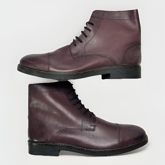 These Frank Wright mens leather lace-up boots are new without box and have been in long-term storage for over 5 years. They have never been worn, and the outsoles show no signs of use. However, due to extended storage, the boots exhibit some light cosmetic imperfections that do not affect wear or integrity: