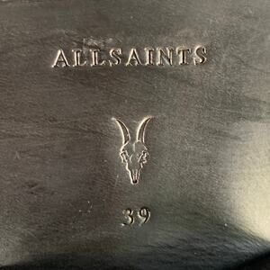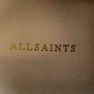 ALLSAINTS "Lex" derby shoes in a black and white patent leather featuring a spectator style, pointed toe, and lace-up closure. Shoe trees not included. Made in Portugal.