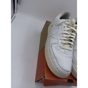 The product is a pair of Nike Air Force 1 Premium White sneakers in size 9, designed for men. These athletic shoes are part of the Nike Air Force product line and feature the iconic Air Force 1 model. With a crisp white color palette and sleek sneaker style, this product is a stylish and comfortable choice for everyday wear or sports activities. Made by the renowned brand Nike, these shoes showcase quality craftsmanship and a classic design that is versatile and on-trend.