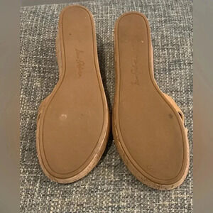 Size 9 Sam Edelman Tan Patent Leather Cork Wedge Platform Sandal
