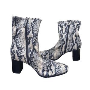 Size 9 Snakeskin Bootie Ankle Boot Block Heel Black Tan Fall Winter Aerosoles