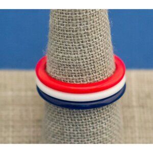 For sale is a set of 3 plastic Size 9 rings by avon. Red, white, and blue.