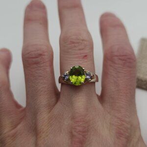 Size 9 Sterling Silver Oval Peridot And Amethyst Gem Ring A3624