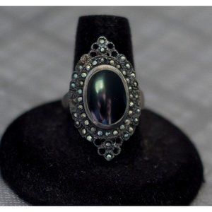 Size 9 Sterling Silver and Marcasite Gothic Ring G1