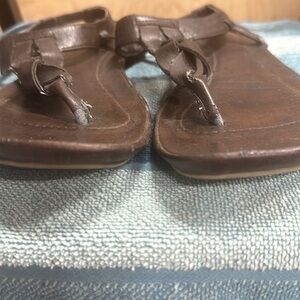 9 Mossinmo all man made dark brown sandals. Pull on and off. Used with some wear. A lot of life in them.