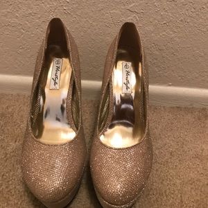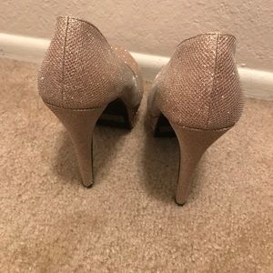 Great for upcoming New Years Eve parties and holiday events! Never worn size 9 gold glitter heels! No trades, please!