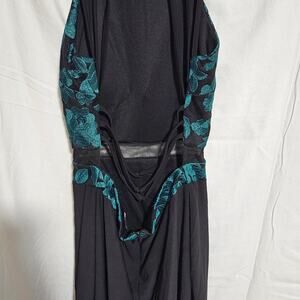 Size 9 green and black halter dress, backless, by Morgan and Co.