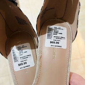 Size 9 white and blue plaid peep toe pumps with bow over toes and zip up back!