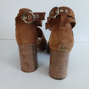 Christian Di Riccio suede pumps are in excellent condition. Chunky, block heel. The strap wraps around the ankle twice.