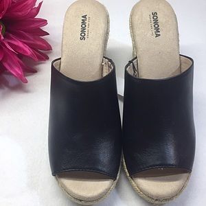 Step into comfort and style wearing these women’s espadrille wedge sandals in black. True to size.