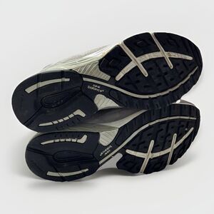 Midsole: The midsoles are structurally solid but exhibit significant yellowing, discoloration, and staining, which is common with this model over time. There are also some dirt marks and creasing from normal wear.