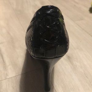 There is a bow detail on the front and corset detailing on the back of the shoe.