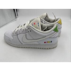 The product is a pair of Nike Dunk SB Low Be True sneakers in size 9.5, released in 2022. These athletic shoes feature a low top shoe shaft style with a white color and leather upper material. They belong to the Nike Dunk product line and are designed for men who appreciate style and comfort in their footwear. Perfect for sneaker enthusiasts looking for a unique and trendy addition to their collection.
