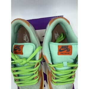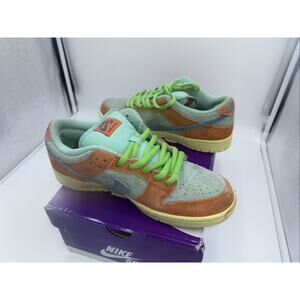 The product is a size 9.5 Nike Dunk SB Low in Orange Emerald Rise, featuring a low top silhouette and suede upper material. This men's athletic shoe is part of the Nike Dunk product line and was released in 2023. With a stylish design and vibrant orange color, this sneaker is perfect for those looking for a trendy and comfortable shoe option.