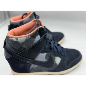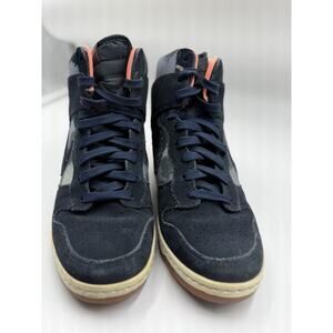 The product is a pair of Nike Dunk Sky Print High sneakers in Army Navy blue, featuring a high-top shoe shaft style and a size 9.5. Designed specifically for women, these athletic shoes are part of the Nike Dunk product line, offering style and performance in a sneaker silhouette. The vibrant blue color adds a pop to the classic Nike Dunk design, making them a fashionable and functional choice for active individuals.