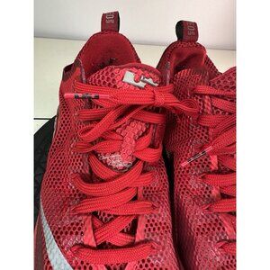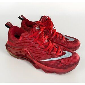 The Nike LeBron 12 Low University Red in size 9.5 is a stylish and athletic sneaker designed for men. With a low top design and a vibrant red colorway featuring University Red/Reflective Silver-Gym Red-Black accents, this shoe is part of the Nike LeBron collection and was released in 2015. The shoe offers both style and performance, making it a popular choice for sneaker enthusiasts looking for a combination of fashion and function. The iconic LeBron design and Nike brand guarantee a high-quality and trendy addition to any sneaker collection.