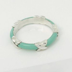 Size 9.5 Tiffany Signature X Kiss Ring in Blue Enamel and Sterling Silver