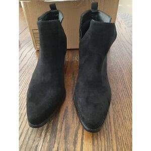 Women's Size 9 Black Mata Breakaway Black Booties Ankle Boots Shoes- Vegan, Slip-On, Pointed Toe, Rises to Meet the Ankle, Deep V Side Slits, Low Block Heel APPROX 2.5" Heel