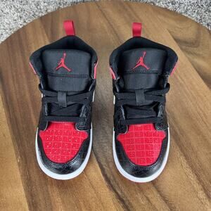 Size 9c - New Air Jordan 1 Mid SS TD Bred Black Gym Red White Toddler DM9649 001