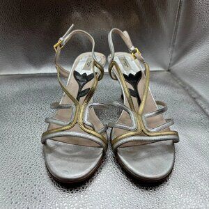 Size EU 35.5 Prada Platinum Gold Womens Leather Strappy Stiletto Heel Sandals