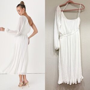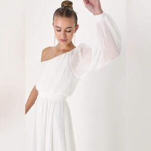 Size L Lulus Always Loving You White Pleated One-Shoulder Midi Dress