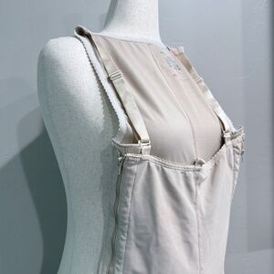 Recovery Step: Step 1 (0–4 wks). Features: zippers on both sides for easy on/off, open crotch for bathroom access, adjustable shoulder straps, short legs, reinforced front paneling for added core support.