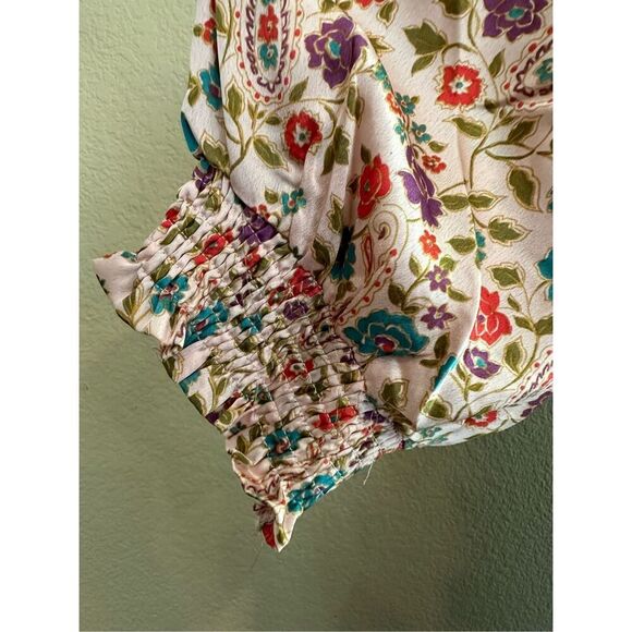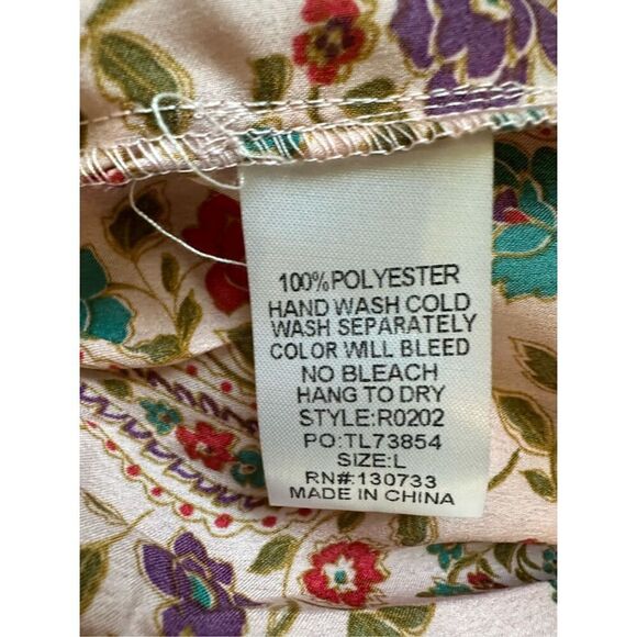 Size L Umgee Satin Paisley Floral Tiered Mini Dress in Blush