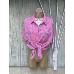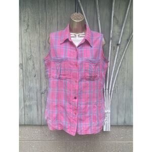 Size L//Vintage 90s Pink Faded Glory Sleeveless Plaid Button Up