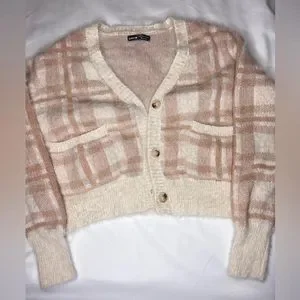 Fuzzy warm jacket, can be styled up or down. Almost like a Chanel jacket dupe. Never worn. Also wearable for the weather like for brunch, church, run errands etc