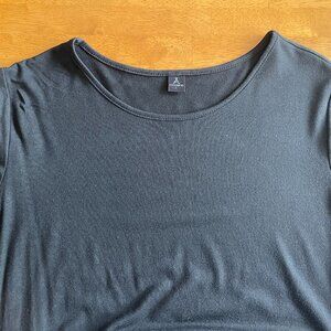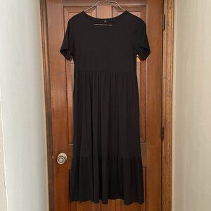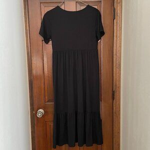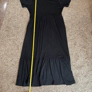 Size Large Anrabess black maxi dress with pockets. Tiered skirt, crew neck and two side pockets. Super comfortable and very versatile! Can be dressed up or down. Perfect for running errands, lounging around or brunch on the weekends!