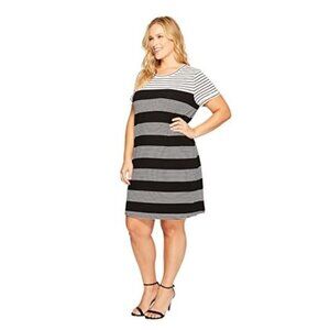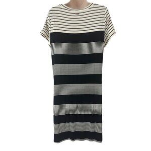 Size Large CALVIN KLEIN BLACK & IVORY SOFT STRIPED T-SHIRT DRESS Summer Vacation