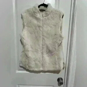 Size Large Coldwater Creek Off White Vest-Lined-Zip Front-Faux Fur Pattern