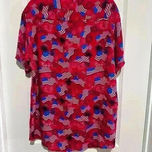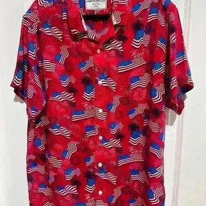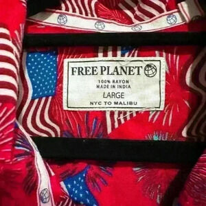 Free Planet Mens Large Patriotic USA Flags Button Front Shirt Fireworks.