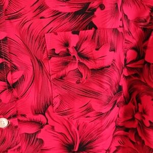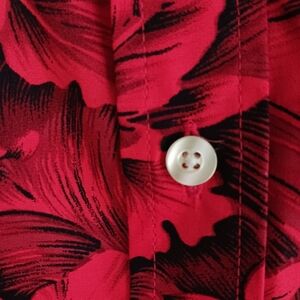 Size Large Ken LTD Mens Dress Shirt Red Floral, Cotton Tropical Fall