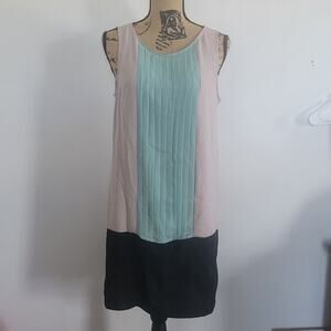 Size Large Lush tan mint & black color block sleeveless shift dress with pleats