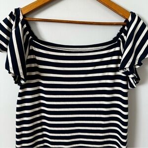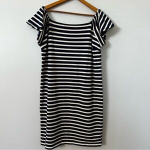 Size Large RALPH LAUREN NAVY BLUE STRIPED OFF-SHOULDER DRESS Summer Coastal