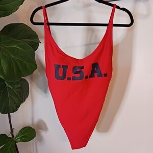 Size Large USA Womens One Piece Swimsuit Red Beach Fourth of July America
