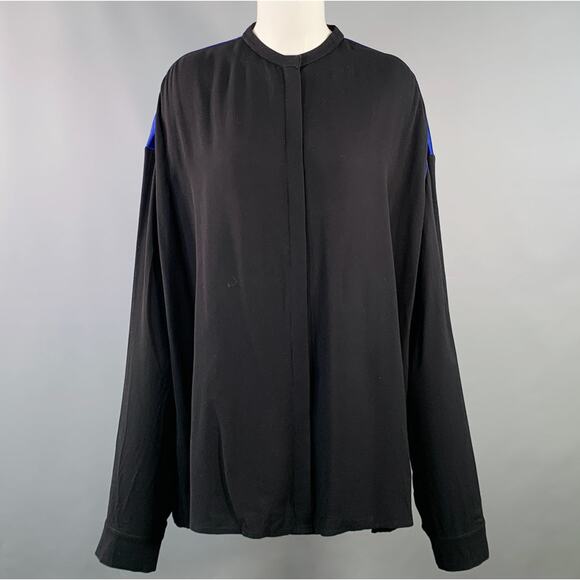 Size M Black Blue Viscose Silk Nehru Collar Hidden Buttons Shirt