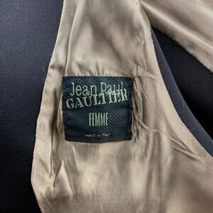 Vintage JEAN PAUL GAULTIER vest comes in a black wool blend with a full animal print liner featuring a peak lapel, sleeveless, flap pockets, and a double breasted closure. Made in Italy.