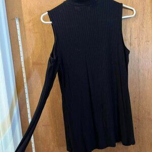 Size M - Bobeau - Black Long Sleeve Cold-Shoulder Knit Pullover Top