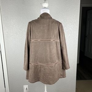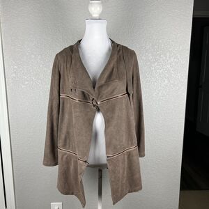 Size M Brown Asymmetric Zipper Ultra Suede Tiered Draped Hip Length Jacket