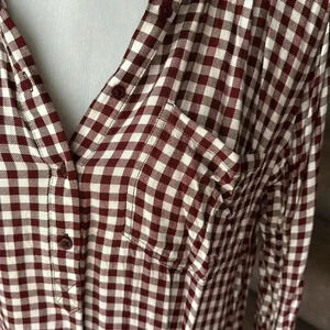 Cosmic Blue Love size Medium buttery soft burnt burgundy checkered blouse with quarter down buttons.